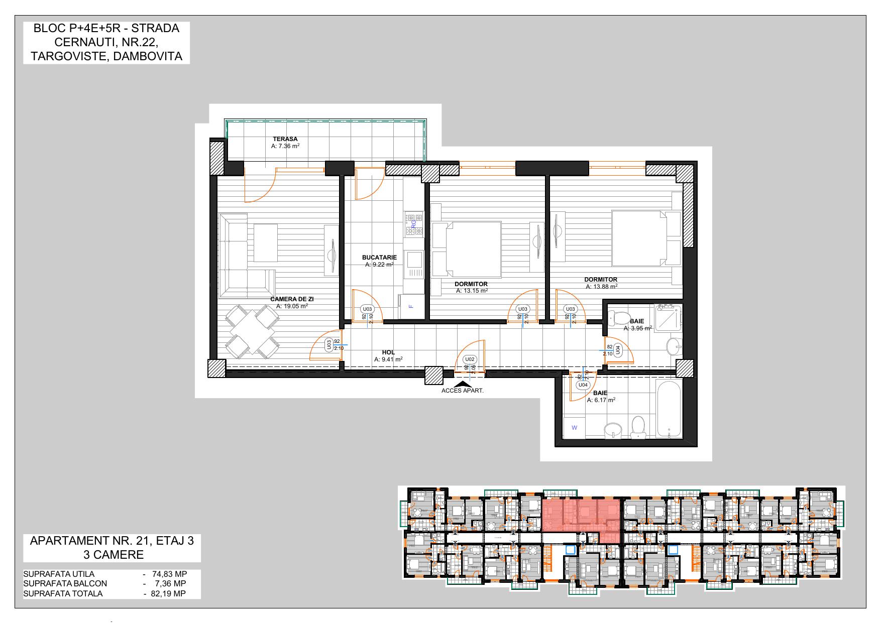 Apartament 3 camere - Imobil P+4E+5R B-Dul Eroilor / Str. Cernăuți